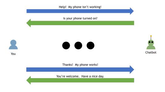 But now replace a person with a computer program , the program being an on demand of question and answer application that is called chatbot.