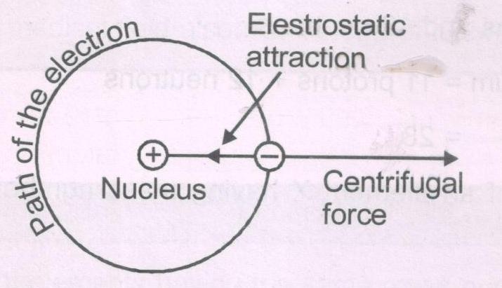 6. The centrifugal force acting outwards balances the inward coulombic attraction by the nucleus. This stabilises the electrons in their orbits.