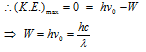 Where W = work function of metal (It is characteristic of metal &has low value for alkali metals likeRb, Cs, K etc.)