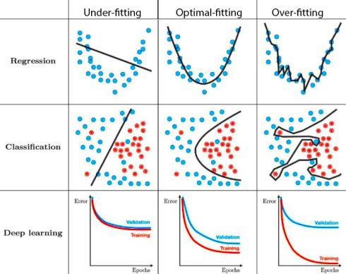 Following are few examples of how under-fitting, optimal-fitting and over-fitting looks like.