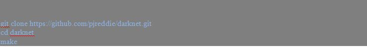 To install the Darknet framework just follow the below code. If you are using gpu then mention the GPU=1 and CUDNN=1.