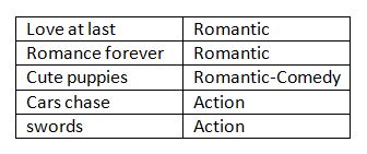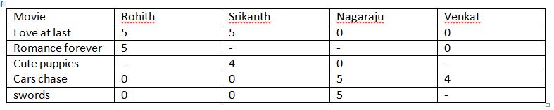 Let’s say you own a company that provides steaming services to the people where your users can view and rate different movies on a scale of 0-5 rating .The above table represents the rating of different users on different movies where “0” implies they didn’t like the movie and “5” implies they are amazed and “-” shows that they didn’t watched the movie and by the name we can categorize the movies