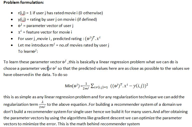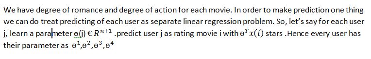 y(i,j)=(0-5)rating given by user ‘j’ to movie ‘i’(defined only if r(i,j) = 1)