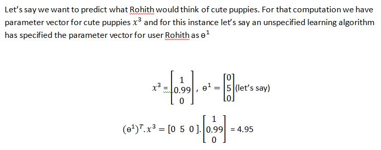 Thus we predict that Rohith may rate the movie cute puppies as 4.95.which is is a reasonable one because as we see Rohith rated more for romantic genre movie.