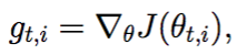 η is a learning rate which is modified for given parameter θ(i) at a given time based on previous gradients calculated for given parameter θ(i).