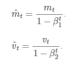 M(t) and V(t) are values of the first moment which is the Mean and the second moment which is the uncentered variance of the gradients respectively.