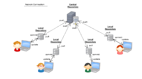 - This means each developer acts as both a client and a server and has their local repository that is an exact copy of the central repository.