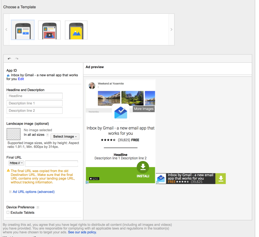 For the purpose of this post, we’re going to imagine that we’re promoting ‘Inbox’ – a mobile application with Google its own application developer.