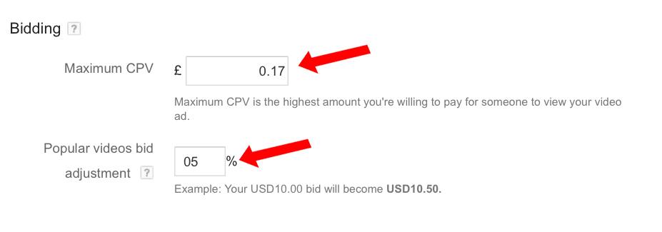 Normally, your Video Ad offers will be lower than those of normal Adwords search campaigns, with the normal Video Ad offer at around £0.05 to £0.15.