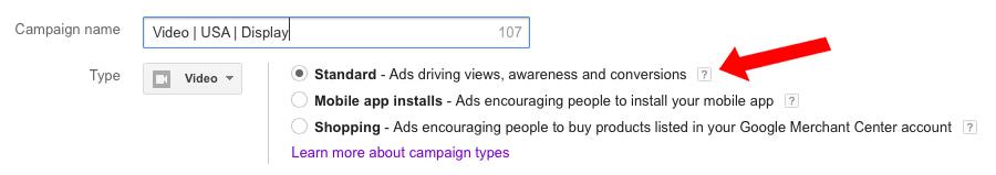 Standard: Video Ads to drive awareness, views and changes, (for example, a lead or buy)