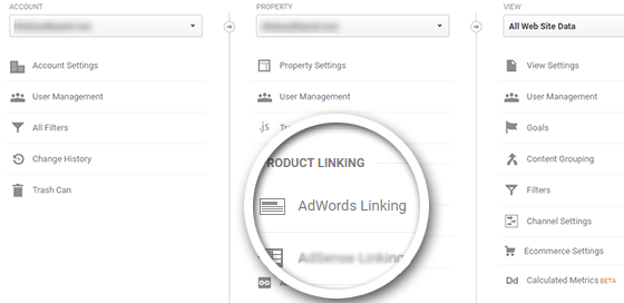 In the center section, click AdWords Linking.