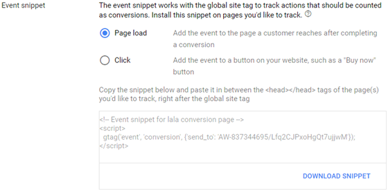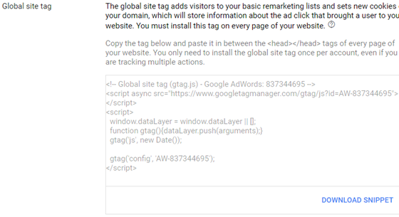 In the label setup step, you’ll discover two bits: event snippet and Global site tag.