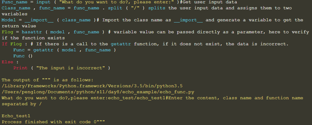 The difference between these three is that when looking for objects, in addition to looking up the objects themselves. , will also go to the class of the created object to find. To illustrate the specific role of reflection in Python with practical examples, let’s look at the requirements first. In all languages, we can easily make it easy for users to enter a data and then print that data, which is the simplest human-computer interaction. The implementation in the code is to generate a variable, get the user input data, and assign it to the variable. Print variables. Similarly, we can define two functions in a class, then ask the user to input data, and decide which function to execute according to the data input by the user.