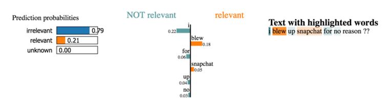 We want to explore the thousands of examples we don’t have the that much of time for this we can use LIME package to see which words keep coming up as stronger contributors. Using this we can get the word importance scores and these scores are used to our previous models and get the predictions.