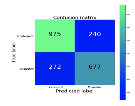 Once observe the above figure our classifier creates the more false negatives compared to false positives which means disaster is a irrelevant and the false positive represents high cost for low enforcement.