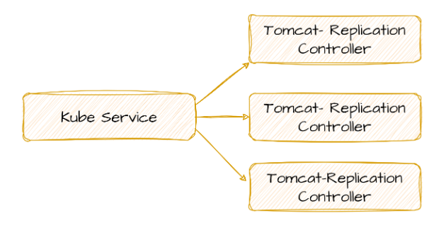 Kubernetes is here serving as a load balancer for three Tomcat replicas.