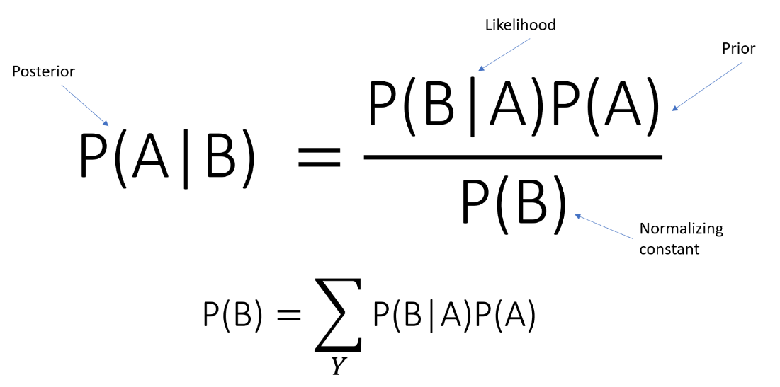 P(A | B) = The probability of event A (hypothesis) occurring given that B (evidence) has occurred.