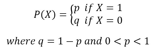 If X is a random variable which is Bernoulli-distributed, it assumes only two values and their probability is given as follows