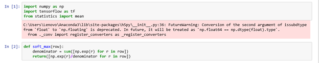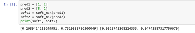 Once ,you can observe the above code the smaller value converted to smaller probabiliy and larger value converted into higher probbility. So finally the softmax values are add upto 1.