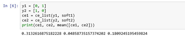 Now, we are going to calculate the cross entropy value for single elements (an element is a scalar value), The first parameter is the actual value and the second element is the predicted value.