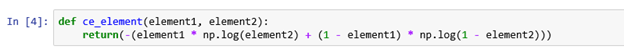 Now, we are going to calculate the cross entropy value for single elements (an element is a scalar value), The first parameter is the actual value and the second element is the predicted value.
