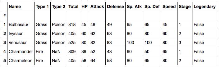 2 df = pd.read_csv(‘Pokemon.csv’, index_col=0)