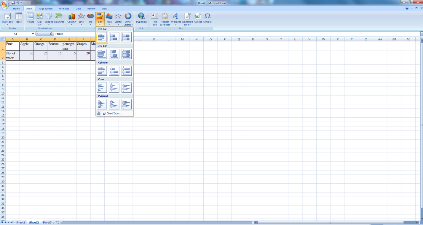 Lets see how we can use Excel tool to represent this data as bar chart