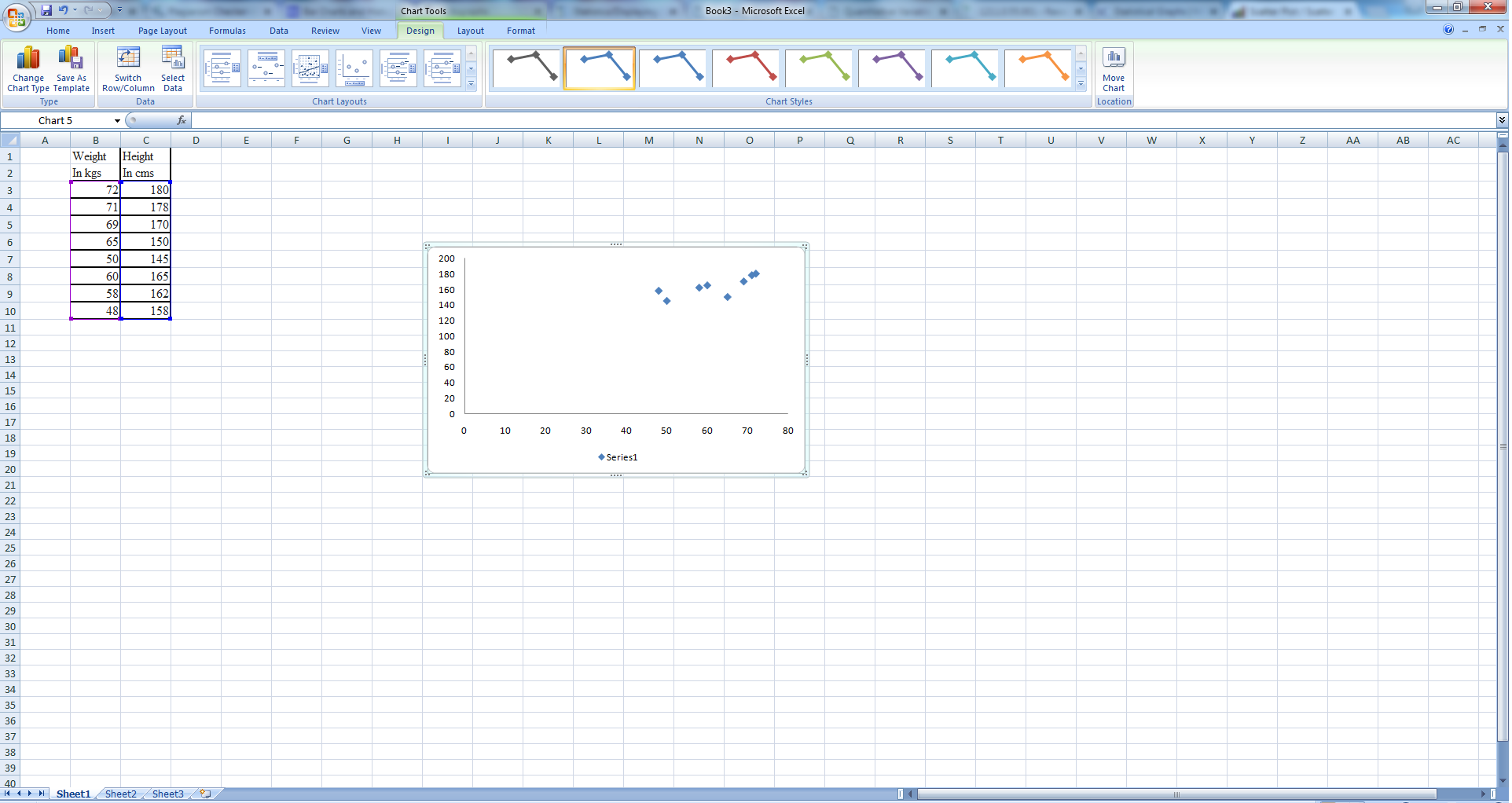 | Height In cms | Weight In kgs |