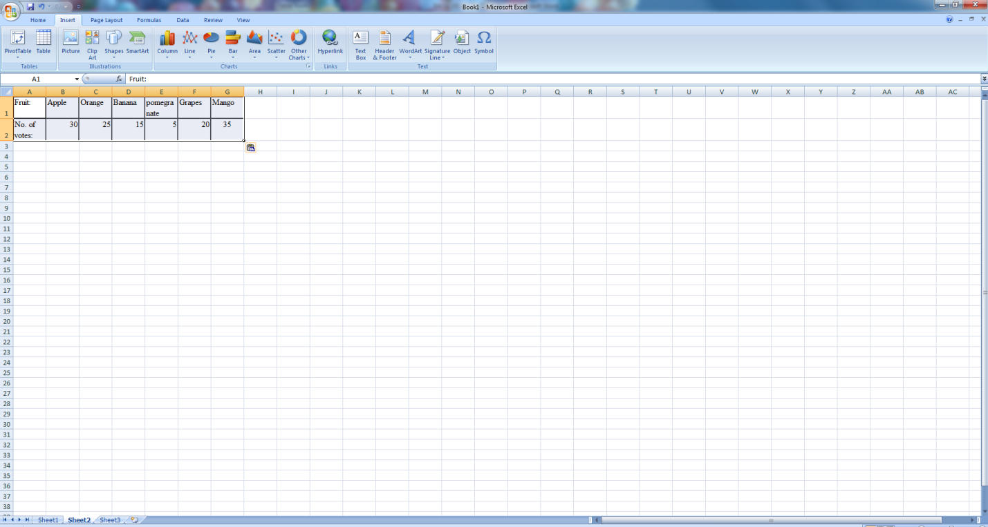 Open Microsoft Excel and enter the table. Select the table which gets highlighted.