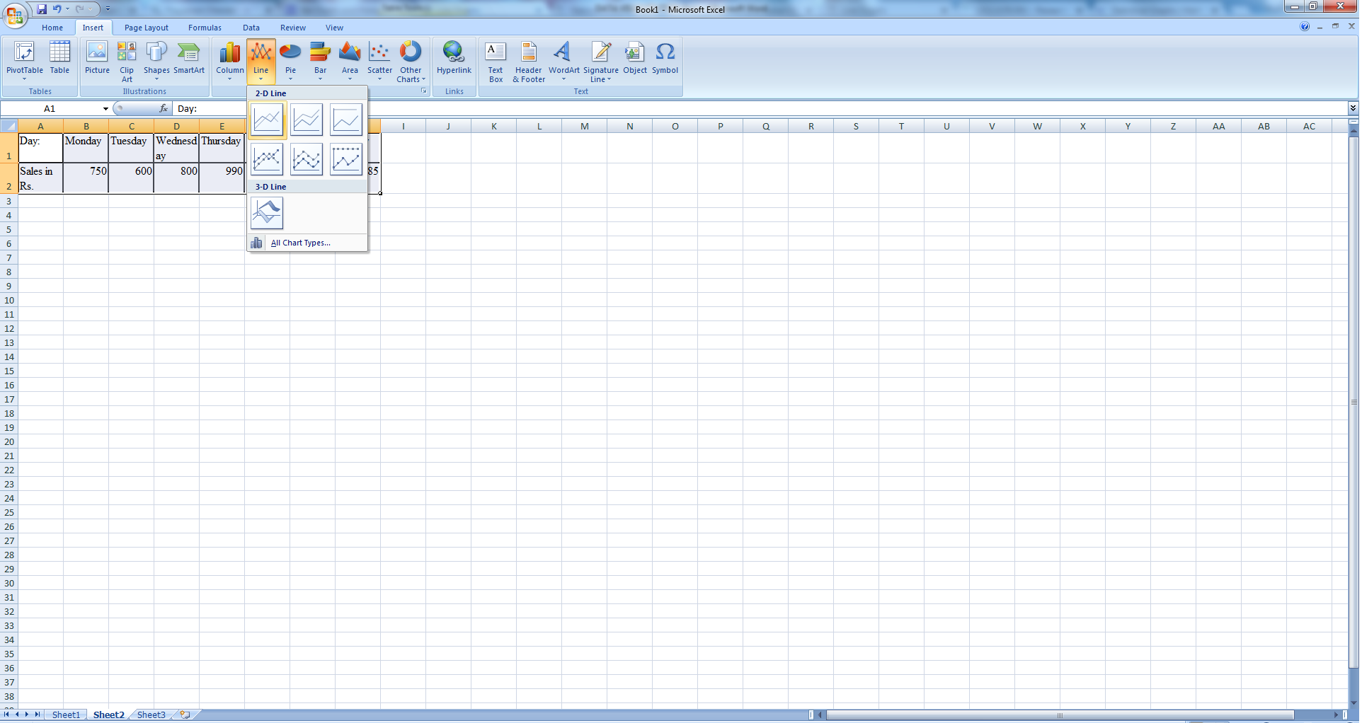 Lets see line graph in excel: