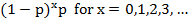 p where 0 < p < 1, x = 1, 2, 3..