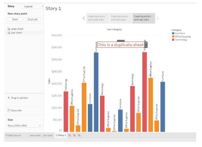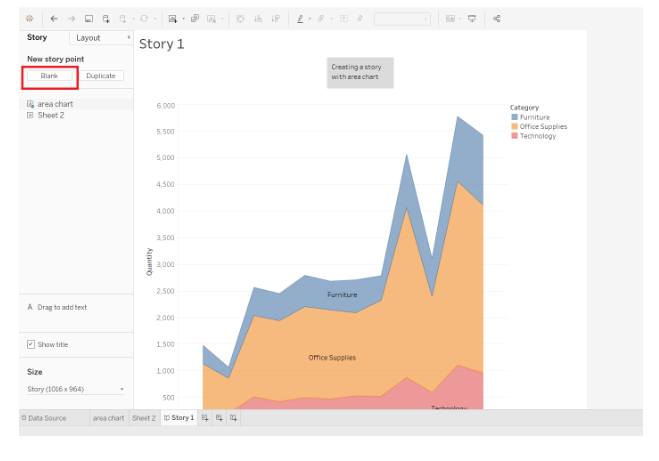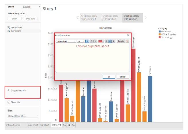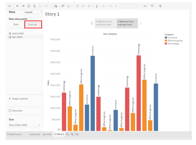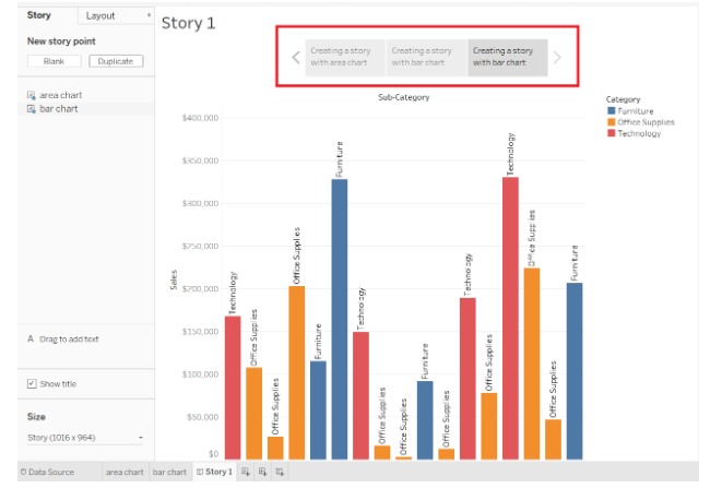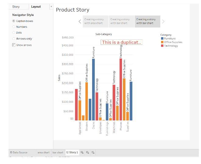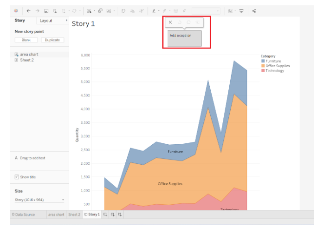- Add a Caption: Explain the Story Point using this Tableau Area