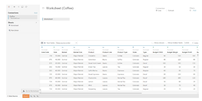 Step 2: In this case, we need to select the file ‘Coffee File.xlsx’ from the location where it exists. Once the data has been retrieved from the Excel sheet, the following screen appears.