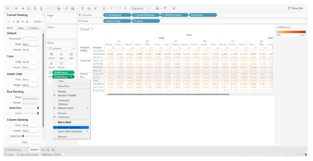 Step 8: Calculations on rows – In addition to performing calculations on rows, we can also perform calculations on measures. The steps below should be followed.