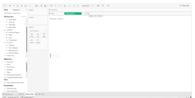 In the Rows section, we will begin by creating two aggregate measure fields. Here, we double-click and enter avg(0).