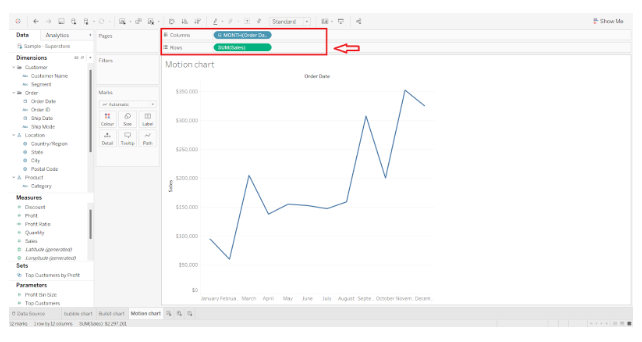 Using motion charts, we can represent our data as it moves. Using a motion chart in Tableau, we can make our analysis more insightful and meaningful in many ways.