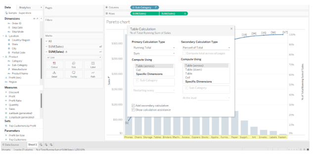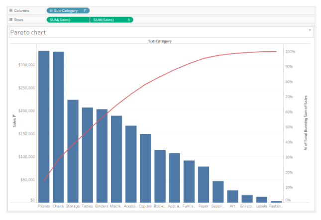 The Tableau Pareto Chart, named after Vilfredo Pareto, illustrates the fact that in a given scenario, 80% of the yield is produced by 20% of the information. Even though this ratio is not usually present, it can be shockingly accurate from time to time.