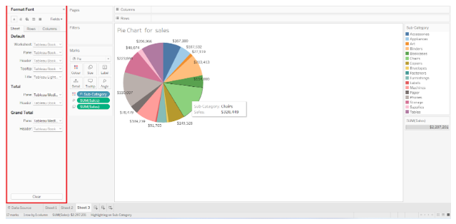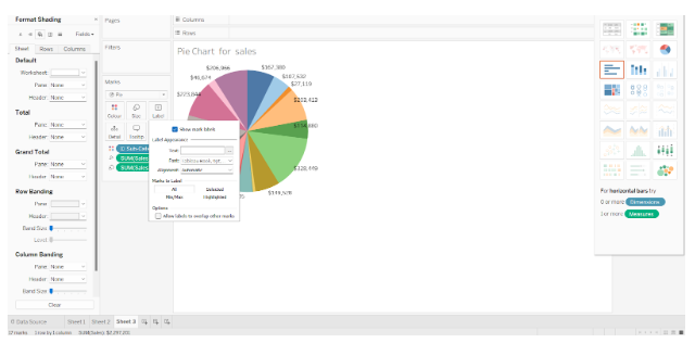 We also have a lot of formatting options for pie charts in Tableau. Pie charts can be formatted in any way you like using the Format option. Right-click on the pie chart and select the Format option.