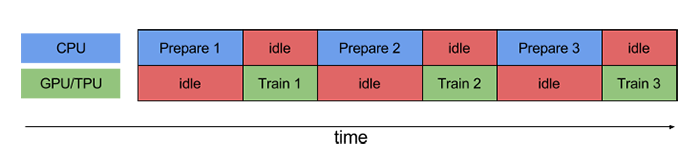 Without pipelining, the CPU and the GPU/TPU sit idle much of the time.