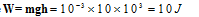 (A) Given, mass =1g=10-3Kg, height=1Km=103m