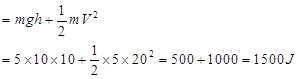 (A) Given, m=5Kg,h=10m, V=20m/s, g=10ms-2