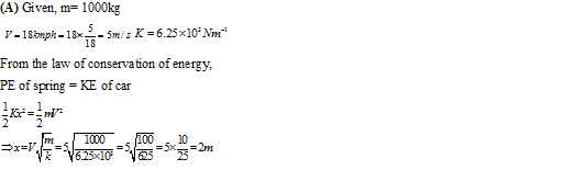 A car of mass 1000 kg moving with a speed of 18.0 km/h on a smooth road and colliding with a horizontally mounted spring constant