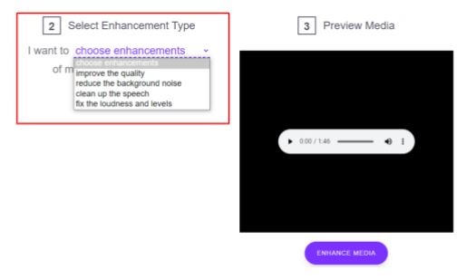 • Content-Type: The user will choose the type of content he/she wants to improve, whether it is mobile audio, podcast, professional video, lecture, etc.