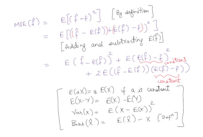 This measures the average mean squared deviation of the estimator from the true value. This error can be decomposed into two terms namely bias and variance. The derivation is given below.