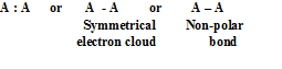 When covalent bond is formed between two similar atoms e.g., H2, O2, Cl2, N2 or F2 shared pair of electrons is equally attracted by the two atoms. Due to this reason electron pair is situated exactly between the two identical nuclei. The molecular orbital constituting the covalent bond is symmetrically distributed around the atoms. Such a covalent bond is called a non-polar covalent bond.