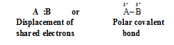 In case, the covalent bond is formed between two dissimilar atoms, one of which has a larger value of electronegativity, the bonding pair of electrons is displaced towards the more electronegative atom or you can say electron cloud containing the bonding electrons gets distorted and the charge density concentrates around the more electronegative atom.
