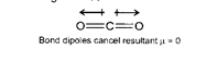 For example, both CO2 and H2O are triatomic molecules but dipole moment of CO2, is zero whereas the dipole moment of H2O is 1.85 D because CO2 is a linear molecule in which the two C=O bonds are oriented in the opposite directions at an angle of 1800.